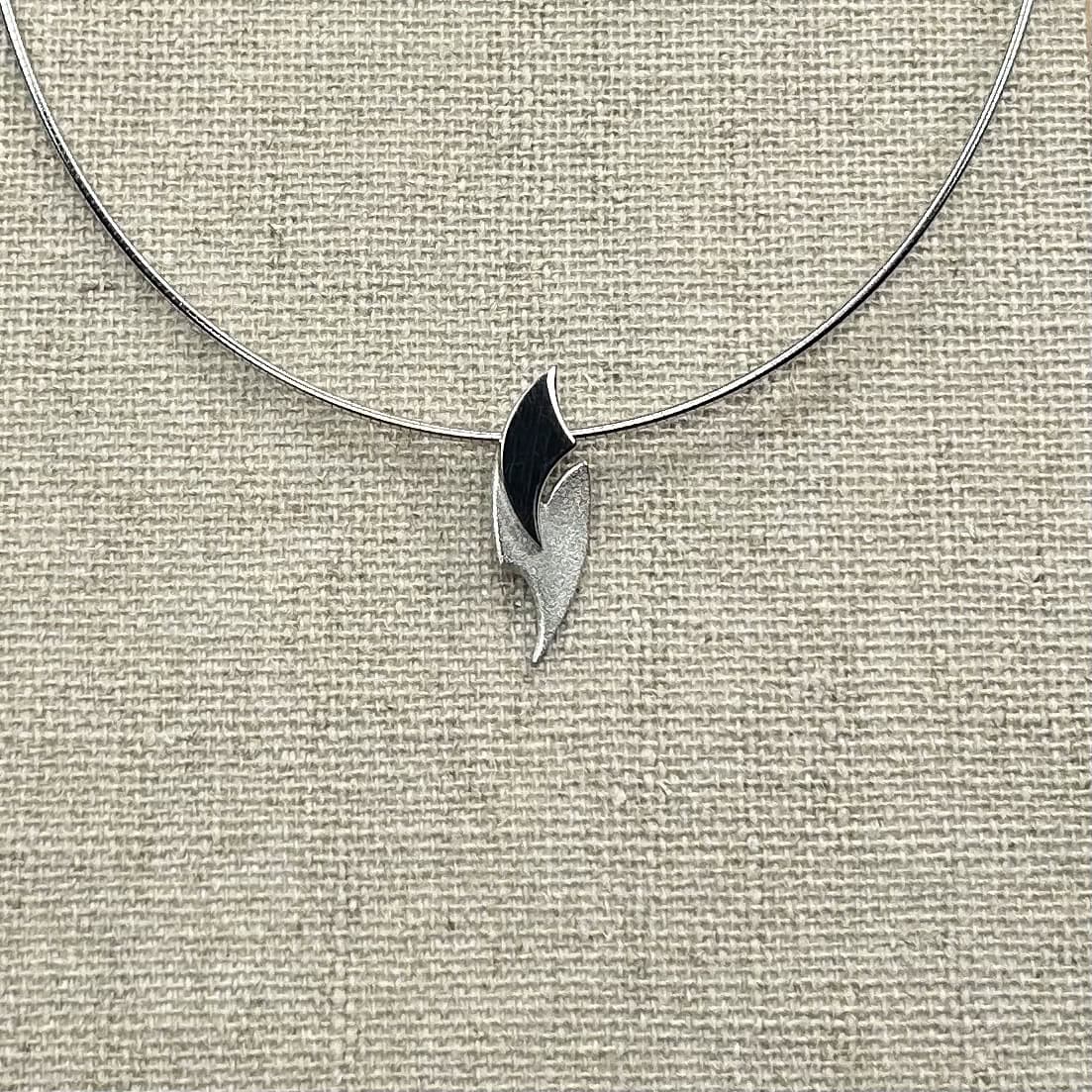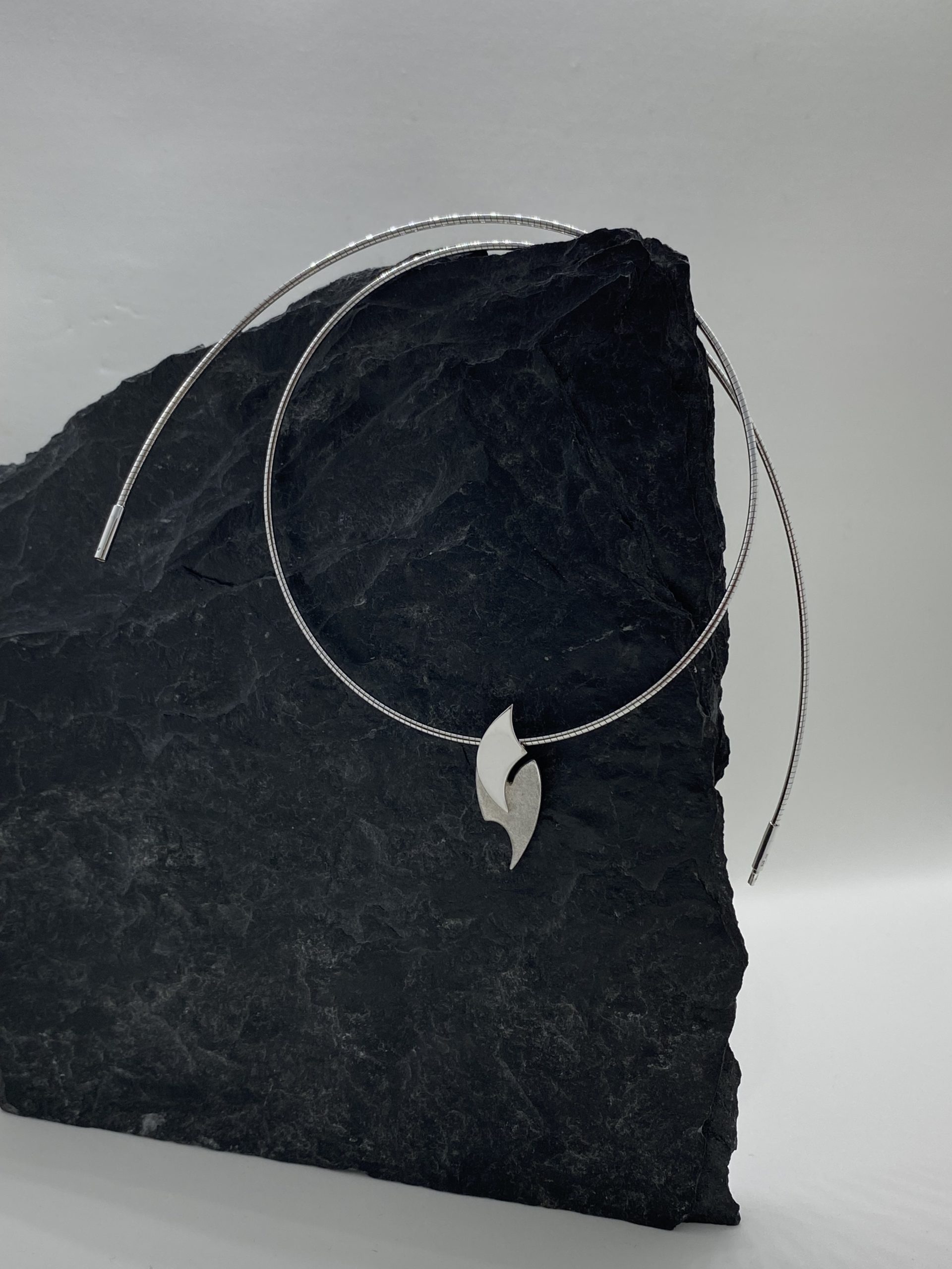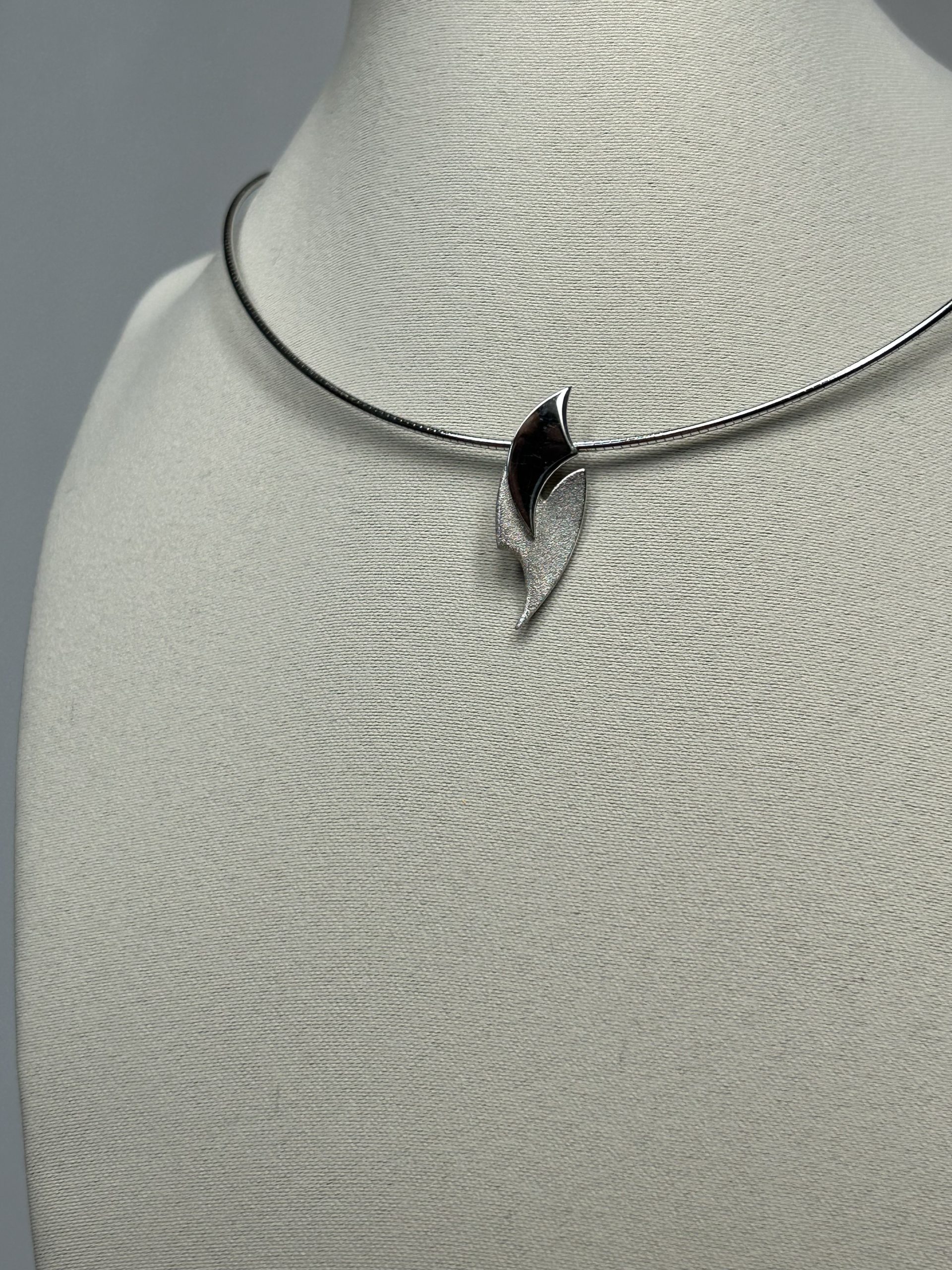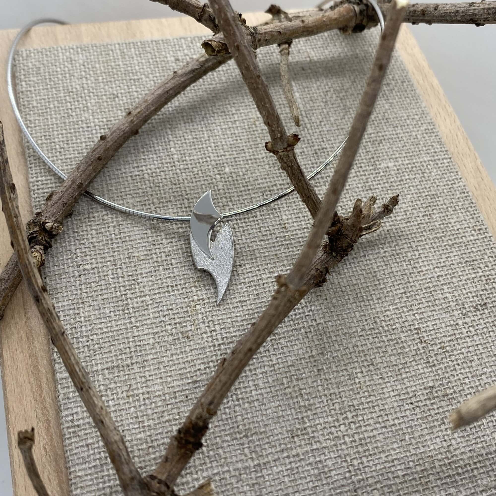 Pendentif en argent 925 rhodié, monté sur un tour de cou également en argent 925 rhodié.